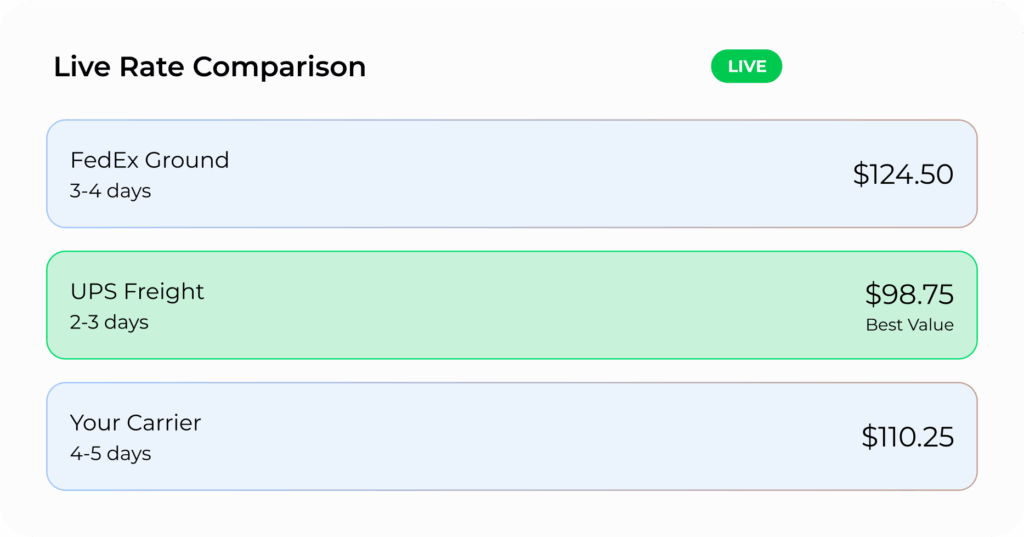 Get instant quotes from 100+ carriers, compare rates and transit times, then book with one click.