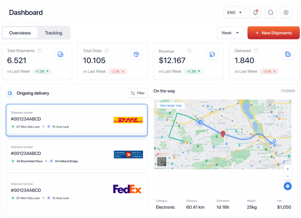 Offrez à votre équipe le pouvoir de réserver et suivre des envois multimodaux instantanément, sans attente, sans courriels.